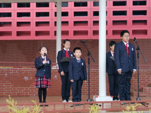 当朝霞映红了我们的双颊,当树上的小鸟叫醒了我们的梦想,新的一周在暖阳中悄然而至,美好的一天又开始了。今天,我们又站在这里,看着国旗冉冉升起,飘扬在蓝天之下;听着国歌雄壮有力,回响在校园之中。