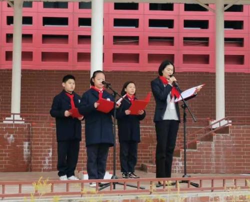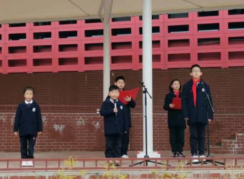 升旗手:预备4班胡一诺、一4班姜恺辰、查欣